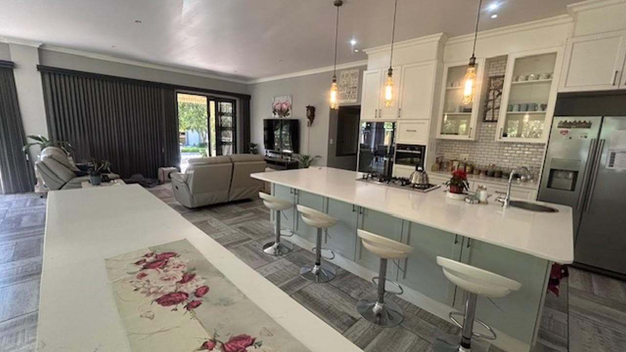 Move in ready! Estate living! “Off the grid”!! Modern 4-Bedroom Full Title Home with Magalies Mountain Views This immaculately maintained 350 m² full title home on a large stand offers modern comfort, beautiful design, and stunning views of the Magalies Mountains. From the moment you enter, the home welcomes you with abundant natural light and spacious open-plan living areas, creating the perfect flow for both family living and entertaining. The designer kitchen is the heart of the home, featuring quartz countertops, ample cupboard space, and a separate scullery and laundry area to keep the main kitchen neat and functional. Property Features • 4 Spacious Bedrooms with built-in cupboards • 3 En-suite Bathrooms with modern finishes • Guest Bedroom on Ground Floor – wheelchair friendly with en-suite bathroom • Separate Guest Cloakroom • Open-Plan Living & Dining...
