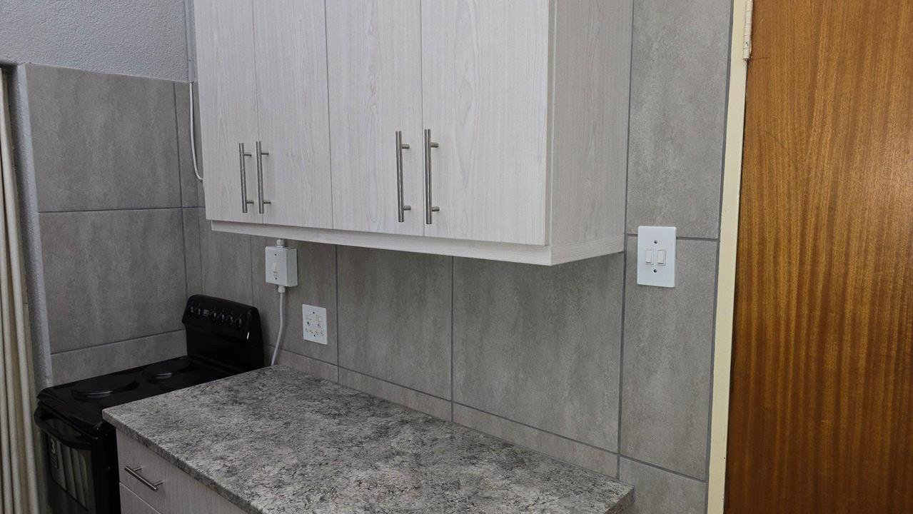 Tastefully renovated in shades of grey, this flat has a new kitchen with plenty of cupboards, new carpets and built-in cupboards in the single bedroom, and tasteful tiles in the lovely new bathroom. Easy access from the visitors parking.