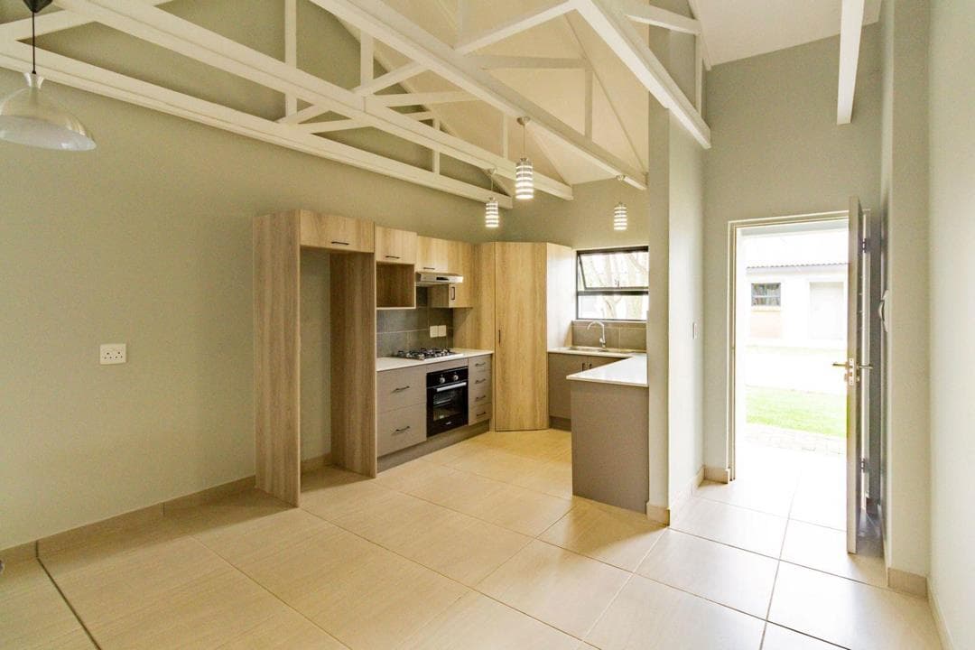 This brand-new retirement property is the ideal place to call home. Located on a smallholding close to the well-known La Camargue Estate, this secure complex is a haven of neat homes and features a dam with walkways and tranquility. The complex consists of 1 and 2-bedroom units, which are modern and well-planned. This 2-bedroom unit has a cosy kitchen with a gas stove, and an open-plan living-/dining area with open roof trusses, which open up to a reception room with a sliding door and a small garden. The bedrooms are light and sunny with built-in cupboards. The main bedroom is en-suite and the second bathroom doubles up as a guest bathroom as well. With low levies and the wonderful opportunity to be part of a brand-new development, this property offers a true sense of new beginnings. The developer has thoughtfully preserved the natural charm of the area -...