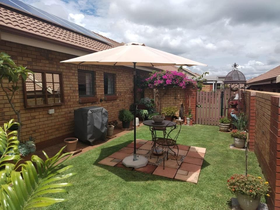 Sole Exclusive Mandate This 3-bedroom simplex is for sale in the highly sought-after Eldoraigne Retirement Estate. The unit features an open-plan lounge and kitchen with ample granite workspace, plus extra cupboards installed in the kitchen for plenty of storage. The three spacious bedrooms, including a main en-suite, can easily accommodate queen or double beds. All windows are fitted with high-quality louvers. The lounge opens onto a covered patio and a large garden, perfect for outdoor entertaining. There is a double automated garage with a double carport, and the unit comes with a solar system. It is also equipped with a DSTV dish, a solar geyser, and prepaid electricity. Residents have access to a well-equipped Community Centre, including a dining hall, beauty and hair salon, medical services, and frail care facilities. The estate is conveniently located...