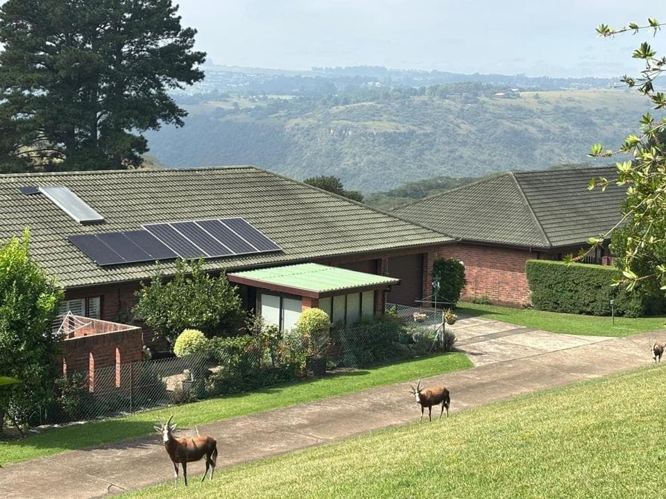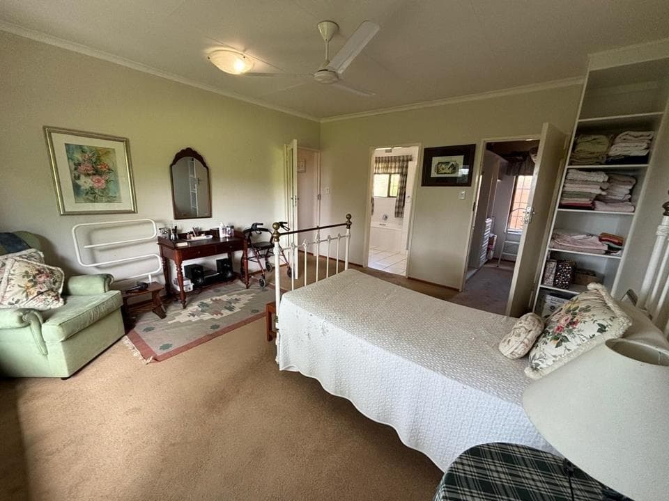 NEW JOINT SOLE MANDATE Arguably one of the very best positions in Amber Valley. This truly amazing property offers excellent location with elevated views from most rooms with sight of the “Falcon Dam”, the stunning uMngeni Valley and the rolling green hills beyond. This beautiful North-East facing home is a “Peregrine” design and is situated in the very heart of the Game section of the Estate with the game right on your front lawn: Zebra, Impala, Blesbok, Warthog, wild Hares, Guinea Fowl and more – all wander freely through the estate to the residents’ delight. Something very special. This elegant stepless simplex is mostly carpeted and consists of open plan dining room and lounge, extra large study (currently used as the third bedroom), two well sized bedrooms and two full bathrooms. The spacious carpeted en-suite main bedroom boasts a separate walk in dressing...