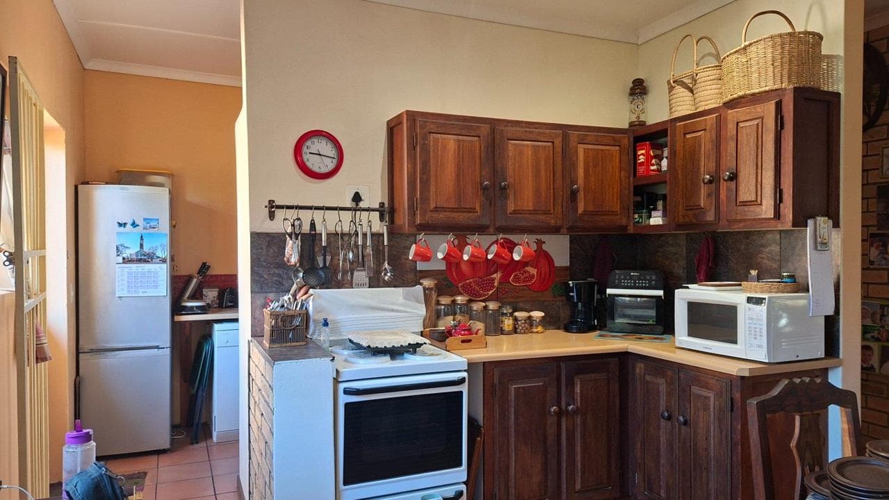 This beautifully presented single-storey face-brick home offers a peaceful and low-maintenance lifestyle in Bonnievale’s sought-after gated retirement village. Set behind secure gates in a safe, friendly community, the property is ideal for retirees seeking comfort, convenience, and beautiful surroundings in the heart of the Western Cape. Step inside to discover a bright, airy open-plan living and kitchen area flooded with natural light from large windows and sliding doors that frame views of the lush, established garden. The living space features high ceilings with ceiling fans, tiled floors for easy care, and a warm brick accent wall. A built-in braai creates the perfect spot for relaxed entertaining or quiet evenings at home. The adjoining kitchen is well-equipped and practical, boasting wooden cabinetry and cupboards for storage. The home offers two...