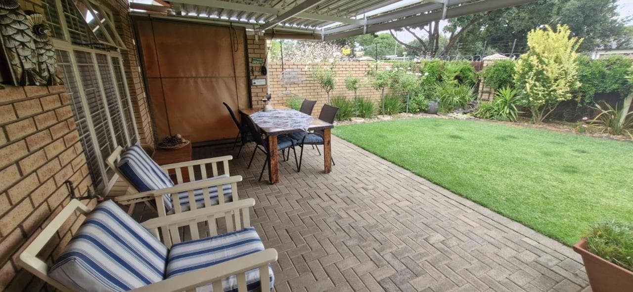 This neat unit is situated in a secure and popular private retirement estate in Universitas. The home offers 2 bedrooms with built-in cupboards and 2 bathrooms. The open-plan kitchen, living room, and dining area create a comfortable living space. A patio with a louvre awning overlooks a spacious, well-maintained garden. Parking includes 1 garage and 1 carport. Ideal for peaceful and secure retirement living.