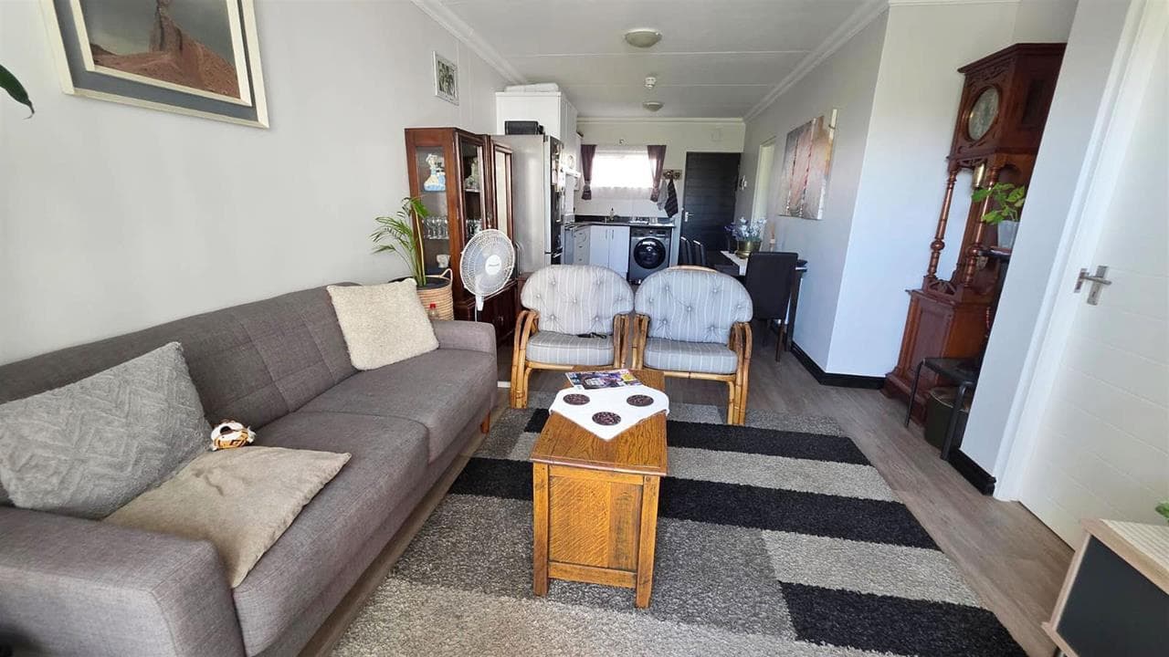 Sectional Title Pet friendly retirement apartment Ground Floor Apartment 2 Bedrooms with build in cupboards 1 Bathroom with walk in shower, Toilet and basin Vinyl flooring throughout the apartment Open plan kitchen with granite tops Bosch Oven, Hob and extractor fan North Facing with Patio and private garden Blinds in lounge ESTATE FEATURES Heated Therapy Pool, Dining room, Deli and Bar area, Gym, Bowls Lawn, Laundry Service, Hair Salon, Library, Hobby Room, Outdoor and Inside Braai Area, Herb and Vegetable Garden, Frail Care, Memory Care, Emergency Alert Service INDEPENDENT LIVING APARTMENTS Access to primary healthcare clinic services once a week by a registered / staff nurse at the Care Centre. 3 days per year (per unit) recuperative care at the Care Centre at no additional charge (T’s & C’s) 24-Hour Call4Care monitoring...