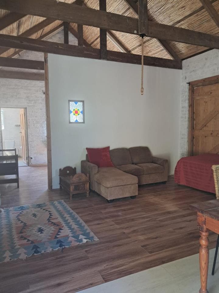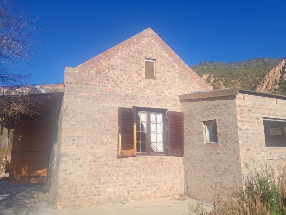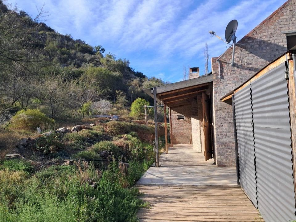 Calitzdorp, Groenfontein Valley, beautiful 1 bedroomed cottage available 18 May. Furnished and equipped for a peaceful lifestyle in a beautiful natural environment Small community of lovely, creative neighbours. Kitchen equipped with gas stove/oven & fridge-freezer. Stoep views across the valley and Nels River. 12.5km from Calitzdorp. Completely off the grid. Solar water pump to tanks from Nels river. Includes solar panels, inverter & battery system for mindful use. Gas shower in bathroom, gas gas heater & fireplace. Gas replacement for tenant's account. Satelite Wifi included, can be upgraded to uncapped at 20mbps. Access is over the Nels River. Suitable for single or couple, available short or long-term. Viewing can be arranged end April. Has small lock-up store room and generator shelter. Solar power can accommodate a top-loader washing...