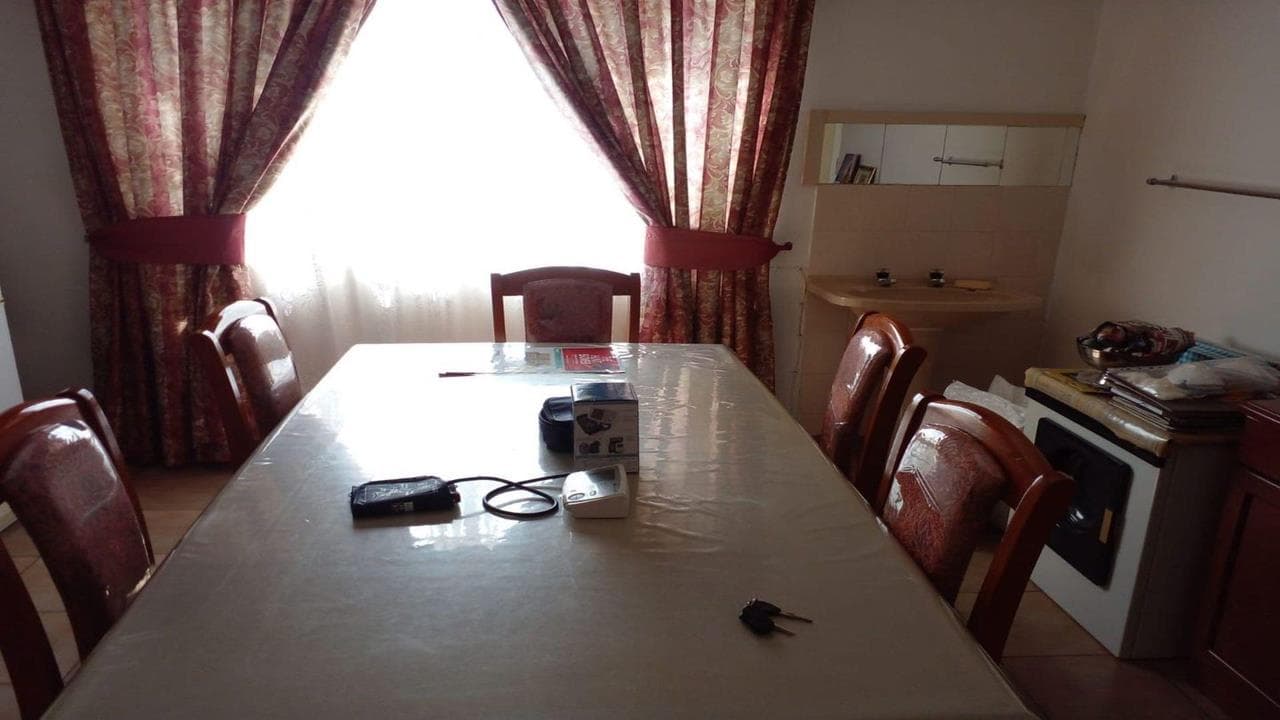This property has a lot to offer! It is situated on a large stand of 1180m2 in a good area of Leandra. The house has four carpeted bedrooms and two bathrooms of which the main is en-suite. The open-plan living area is beautifully tiled and leads into the dining room. There is also a study with a door that leads into the double garage. An additional carport opens into the backyard where you will find more undercover parking and a large Wendy house. The kitchen is spacious with an electric stove and a separate scullery. The rooms are spacious with carpets and cupboards. The extra-large backyard offers unlimited potential for a garden or the building of additional flats. The Jojo tank with pump supplies water for the house during water shedding. The house is secured by burglar bars, security gates, outside beams and an alarm system. Contact me to arrange a viewing for...