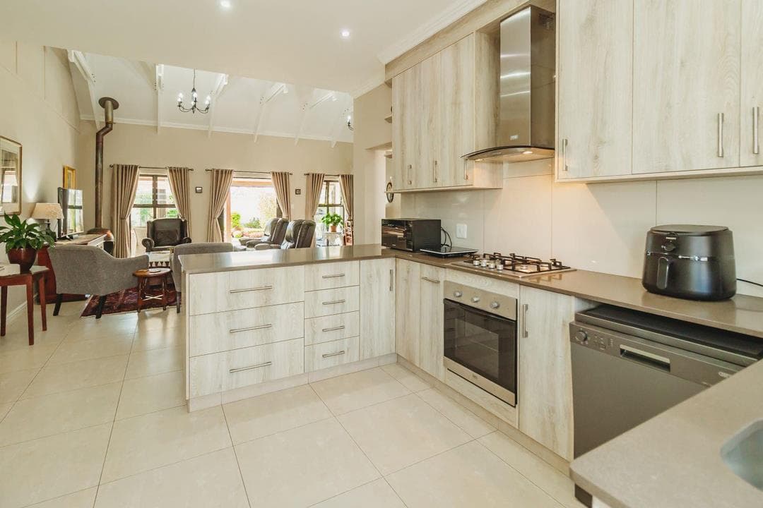 Dual mandate Peace and carefree living await your arrival at Kraaibosch Village. Set within abeautifully landscaped garden, this immaculate home, will enchant the young-at-heart retiree. Sunlight pours in throughout the day to this spacious home, with easy flow, open-plan living areas, featuring a hot pot fireplace, high ceilings and exposed beams, leading to a modern kitchen, with Caesar stone surfaces, gas hob and under counter oven, forming and integral part of the living areas. The patio has been skillfully enclosed and sliding doors lead out to the private garden. There are three, spacious bedrooms, all with built-in cupboards and tiled floors. The main bedroom is en-suite to shower, basin and WC and a second, full bathroom, serves the other two bedrooms. The main bedroom opens out to a pergola covered patio and a second bedroom opens out to an enclosed...