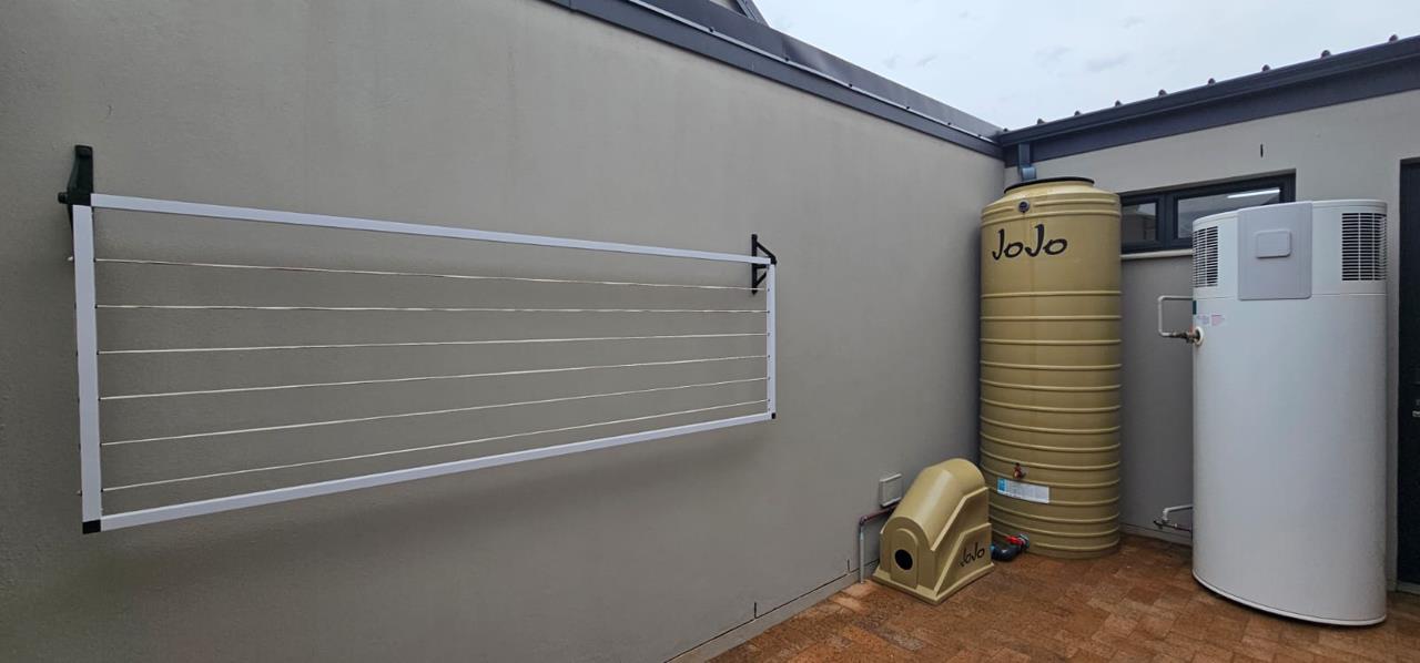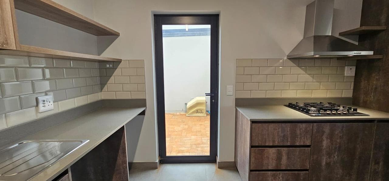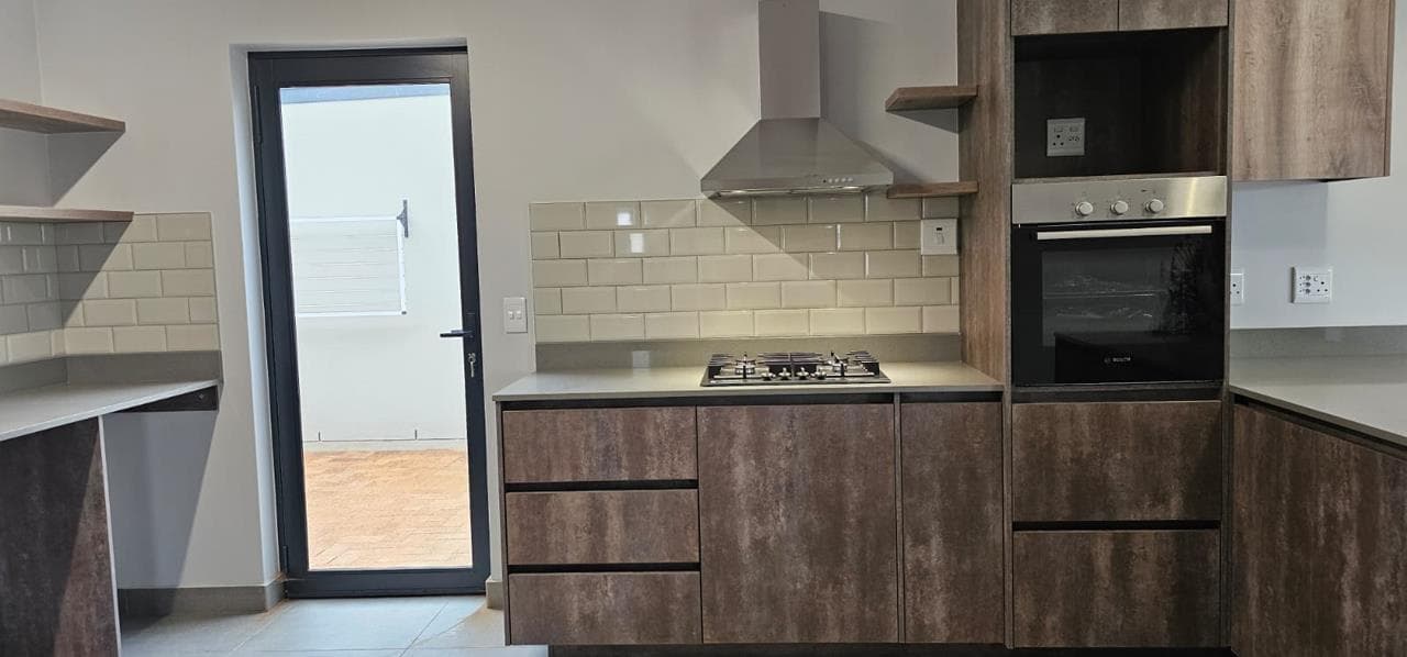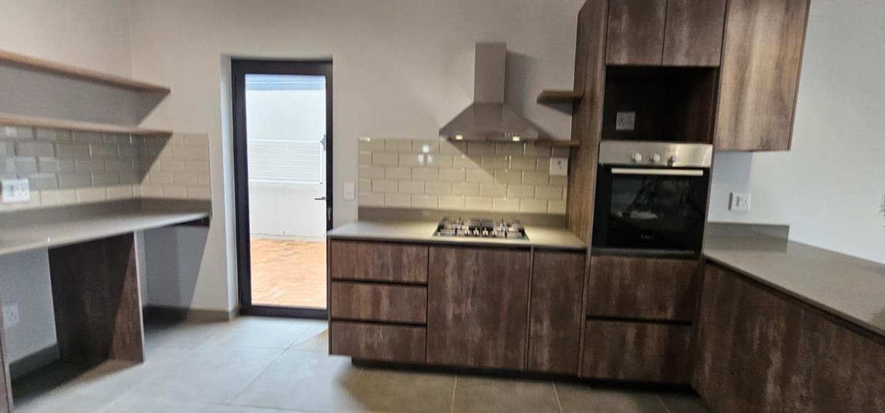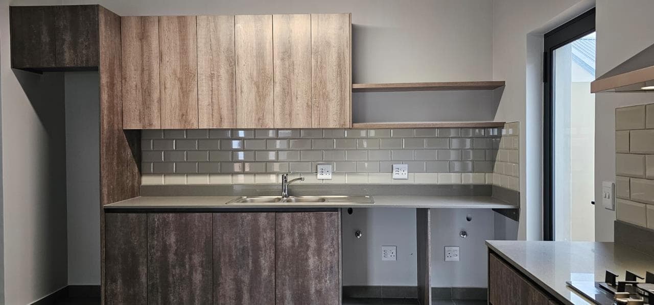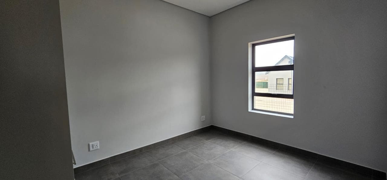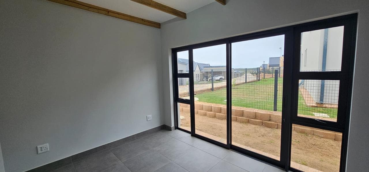 Discover your dream home in this stunning brand new property, designed to offer both style and comfort. The large open plan living area is a standout feature, boasting an abundance of natural light and striking open trusses. A built-in braai is a bonus in the living area! The modern, tiled floors provide a sleek and clean aesthetic throughout the unit, with blinds to be fitted for added privacy and convenience. This property features two spacious bedrooms, with the main bedroom offering extra space and a fitted office area, perfect for those who work from home. Both bedrooms include generous double cupboards for ample storage. The en suite bathroom in the main bedroom is a luxurious retreat, complete with a large walk-in shower. Convenience is key with a single automated garage and additional parking space available in front. Enjoy direct access from the garage to...