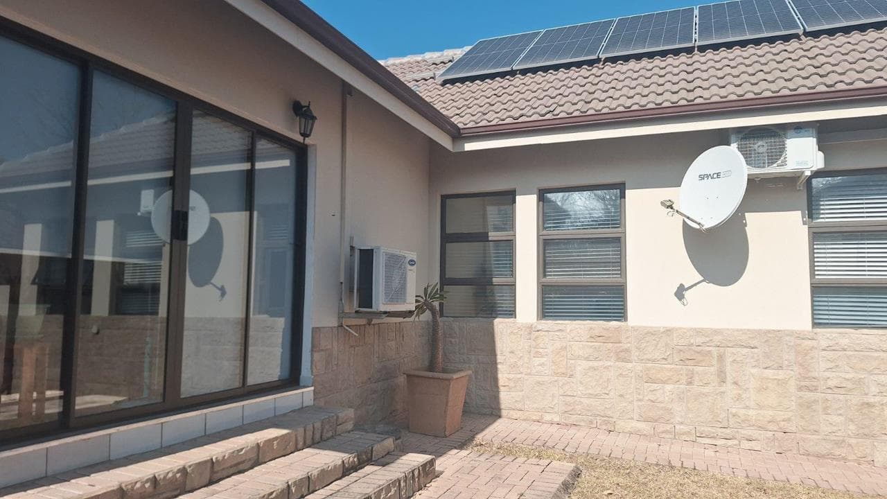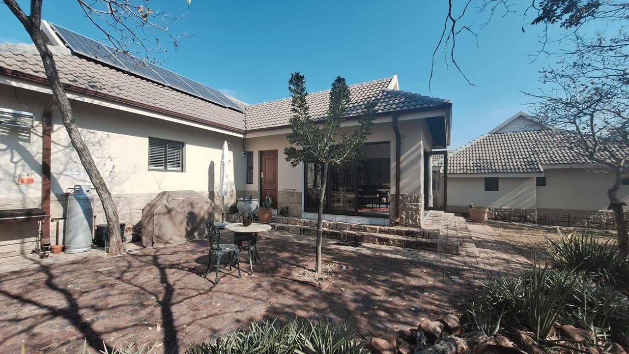 Experience serene bushveld living in this immaculate 3-bedroom retirement home, located in the prestigious Koro Creek Bushveld Golf Estate in Modimolle, Limpopo. Designed with comfort, practicality, and nature in mind, this property offers the ideal blend of modern convenience and tranquil surroundings. Property Features: 3 Bedrooms – Main bedroom includes air conditioning for year-round comfort. 2 Bathrooms – Stylish with a shower, basin, and toilet. Modern Kitchen – Equipped with a gas stove, electric oven, and a built-in water filter system. Open-Plan Living Area – Spacious and fitted with air conditioning. Double Garage – Automated doors provide secure and convenient access. Energy-Efficient – 9kW solar system to reduce energy costs. Water Storage – Backup water tank and pump included. Enclosed Stoep – Stacking doors open to a greenbelt, offering a peaceful...